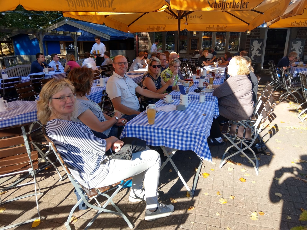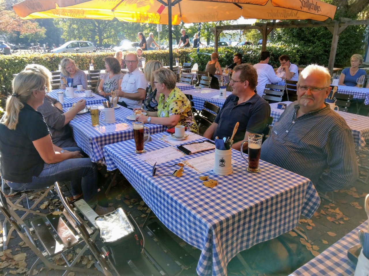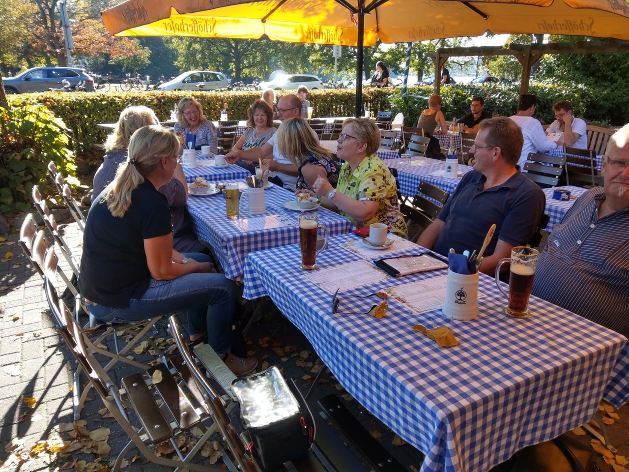 Nach der Stärkung ging es an der Werse weiter Richtung Handorf zur Pleistermühle. Hier legten wir eine Mittagspause im großzügigen Biergarten ein. Nach ca. 1 Stunde rast ging es dann gestärkt und ausgeruht weiter Richtung Münster Innenstadt. Über die Promenade kamen wir zum Aasee, wo wir noch eine Pause mit Kaffee + Kuchen einlegten, bevor es auf die letzten 15 Kilometer zurück nach Senden-Bösensell geht.