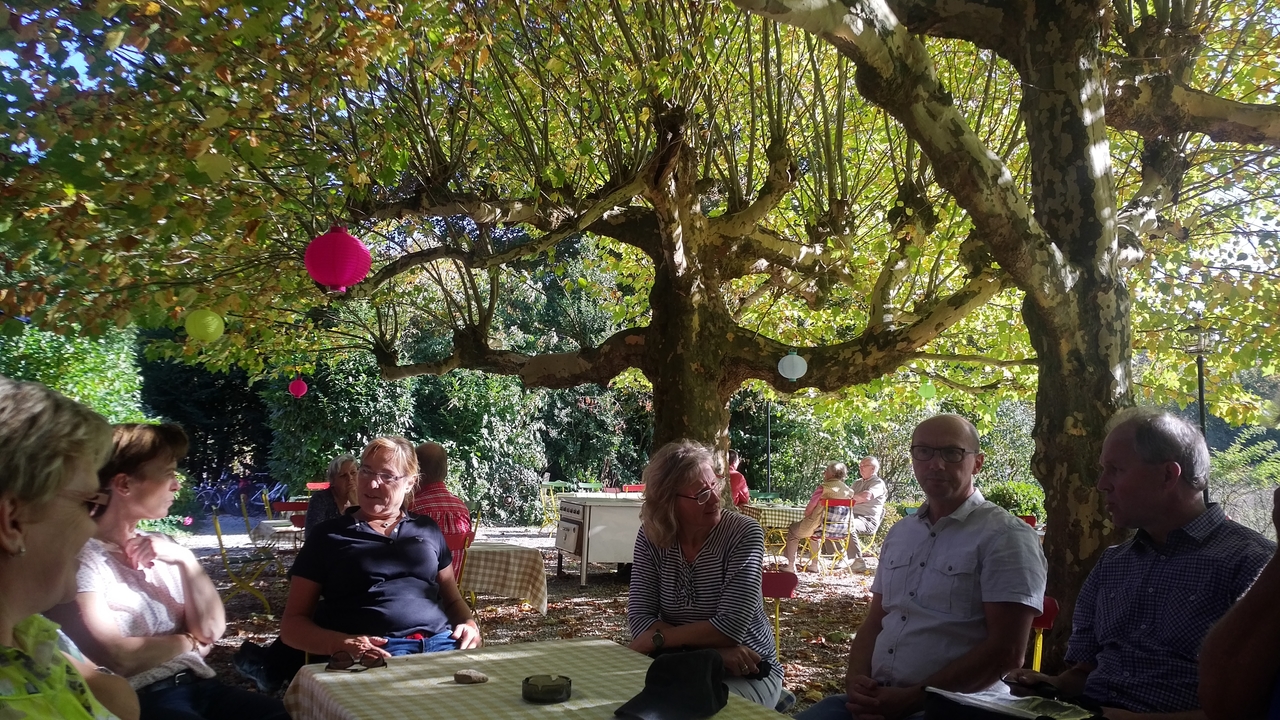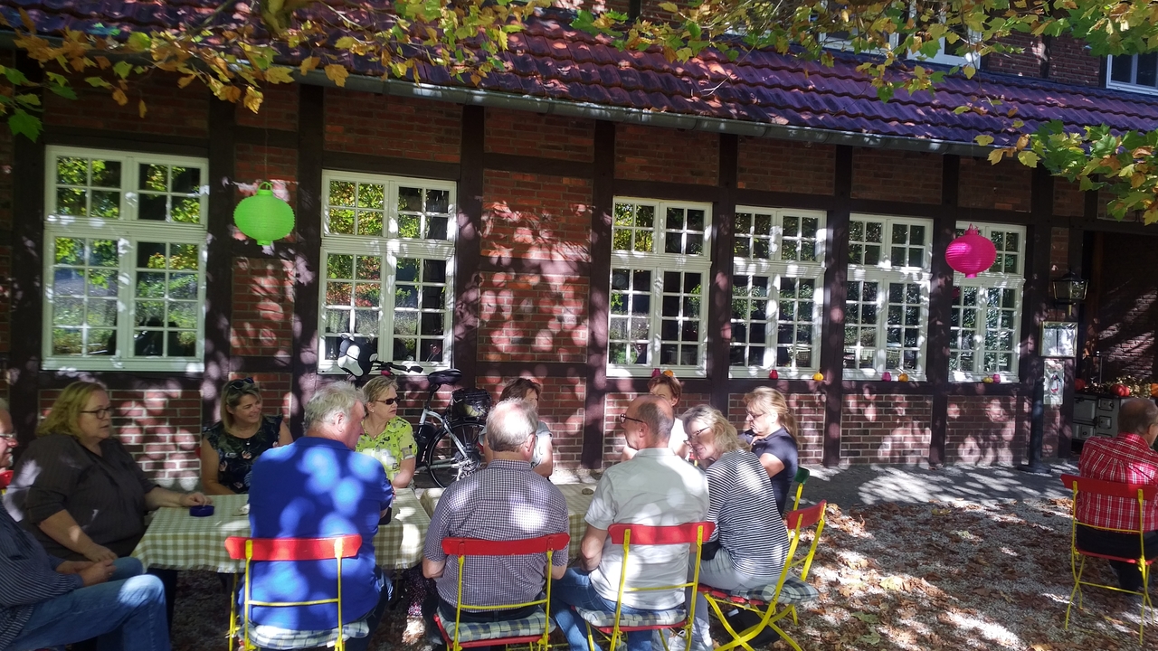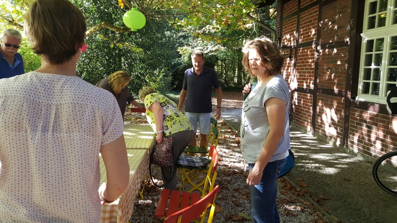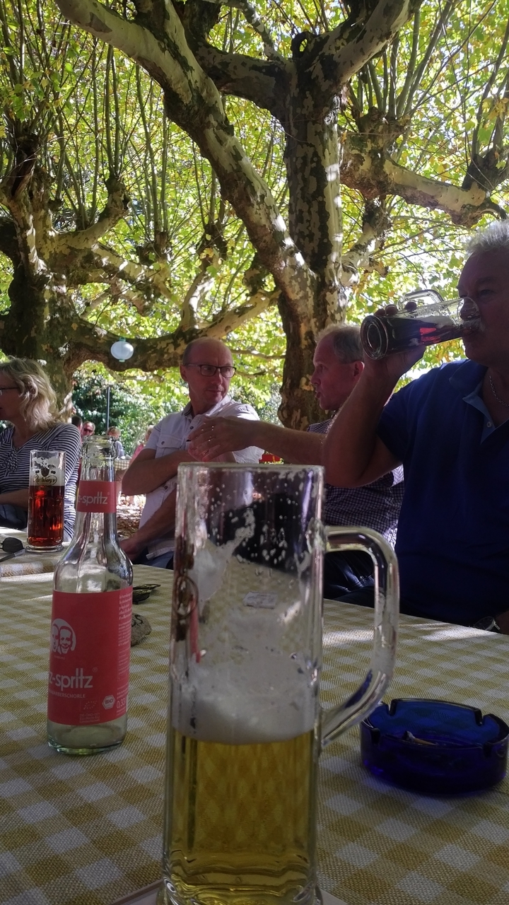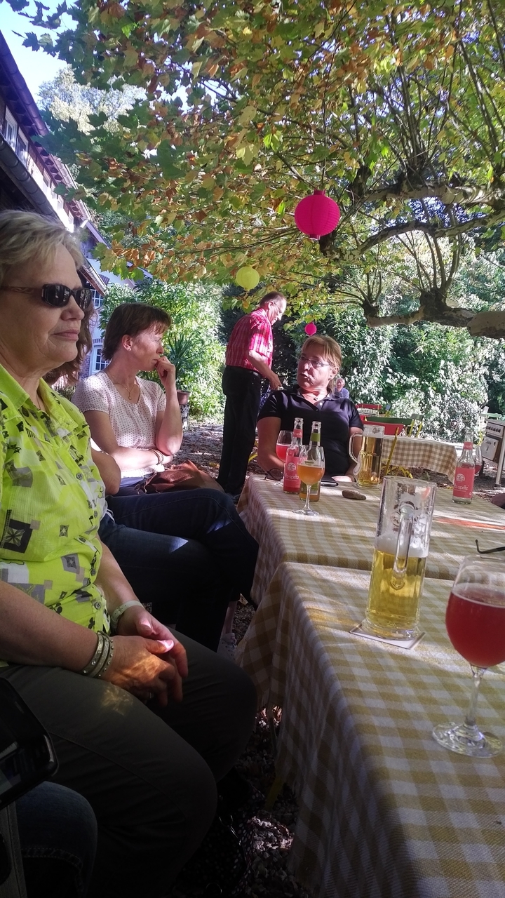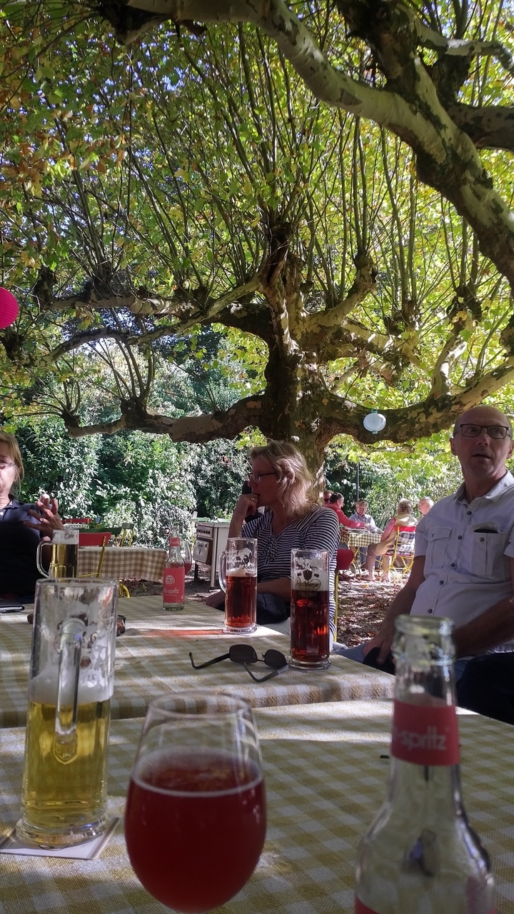 Mit viel grüner Natur ging es über Münster-Hiltrup weiter Richtung Gremmendorf und Angelmodde. Eine nicht ganz so optimale Strecke am Dortmund-Ems-Kanal konnten wir ohne auftretende Probleme bewältigen. In Angelmodde konnten wir dann eine erste Trinkpause in einer etwas versteckten Bauerngaststätte einlegen. In einem wunderschönen Biergarten mit Platanenbäumen hatten wir uns eine erste Erfrischung verdient. Schließlich waren die ersten 25 Kilometer der Strecke schon geschafft.