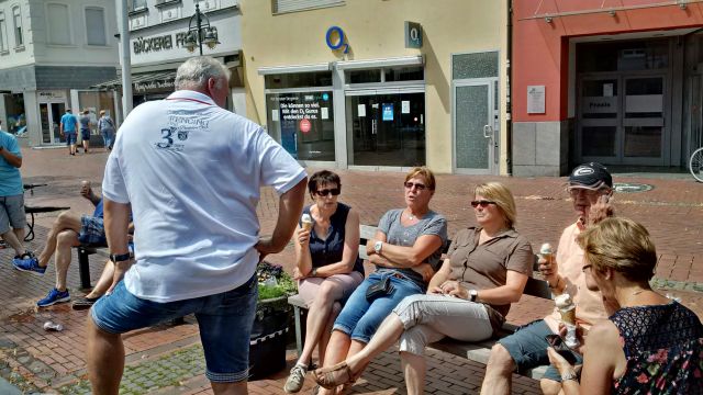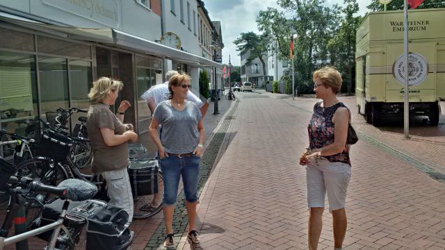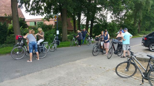 In Emsdetten angekommen wollten zunächst alle noch ein Eis. Leider hatte das angesteuerte Eiscafé nicht genügend Plätze frei um 13 „Eishungrige“ unterzubringen. Deshalb beschließen wir unverrichteter Dinge weiter zu fahren. In der Stadtmitte gelang dann der Wechsel von Wabe 46 auf Wabe 233 nicht so richtig. Statt links herum den richtigen Weg zu nehmen bogen wir rechts ab und kamen damit schneller als erwartet zum Ausgangspunkt und unseren Autos am Waldfreibad zurück.