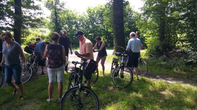 Nach 30 Minuten erreichen wir mit den Autos Emsdetten. Geparkt wird in der Nähe des Waldfreibads. Der ein oder andere Teilnehmer rügt zwar kurz die gefahrene Strecke – „das hätte man auch kürzer und schneller haben können“ - wird Organisator Franz-Josef gerügt. Dann geht es aber auch schon ans abladen und aufsatteln der Fahrräder und nach weiteren 10 Minuten steht die heutige 13-köpfige Mannschaft parat für den Startschuss der heutigen Radtour. Der Tross setzt sich zunächst Richtung Nordwalde in Bewegung. Wir fahren heute die Waben Nr. 46 und Nr. 233. An den ersten Kreuzungen wird das Prinzip nochmal erklärt und alle Teilnehmer angehalten, achtsam nach Fahrradbeschilderungen Ausschau zu halten. Getreu dem Motto „Fahren nach Zahlen“ kann man so ohne Karte und große Routenplanung auskommen, solange man sich an die Beschilderung hält und diese natürlich vorhanden ist.