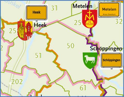 Auf der fortgesetzten Fahrt kommt uns die Richtung „Leer / Steinfurt“ dann dorch langsam etwas komisch vor. Wir wollen eigentlich nach Heek und nicht nach Leer bei Steinfurt. Die Wabenzahlen sind korrekt, nur kann man diese natürlich in zwei Richtungen fahren. Es wird Zeit die Karte zu Rate zu ziehen und schnell wird klar, wir sind in der falschen Richtung unterwegs.