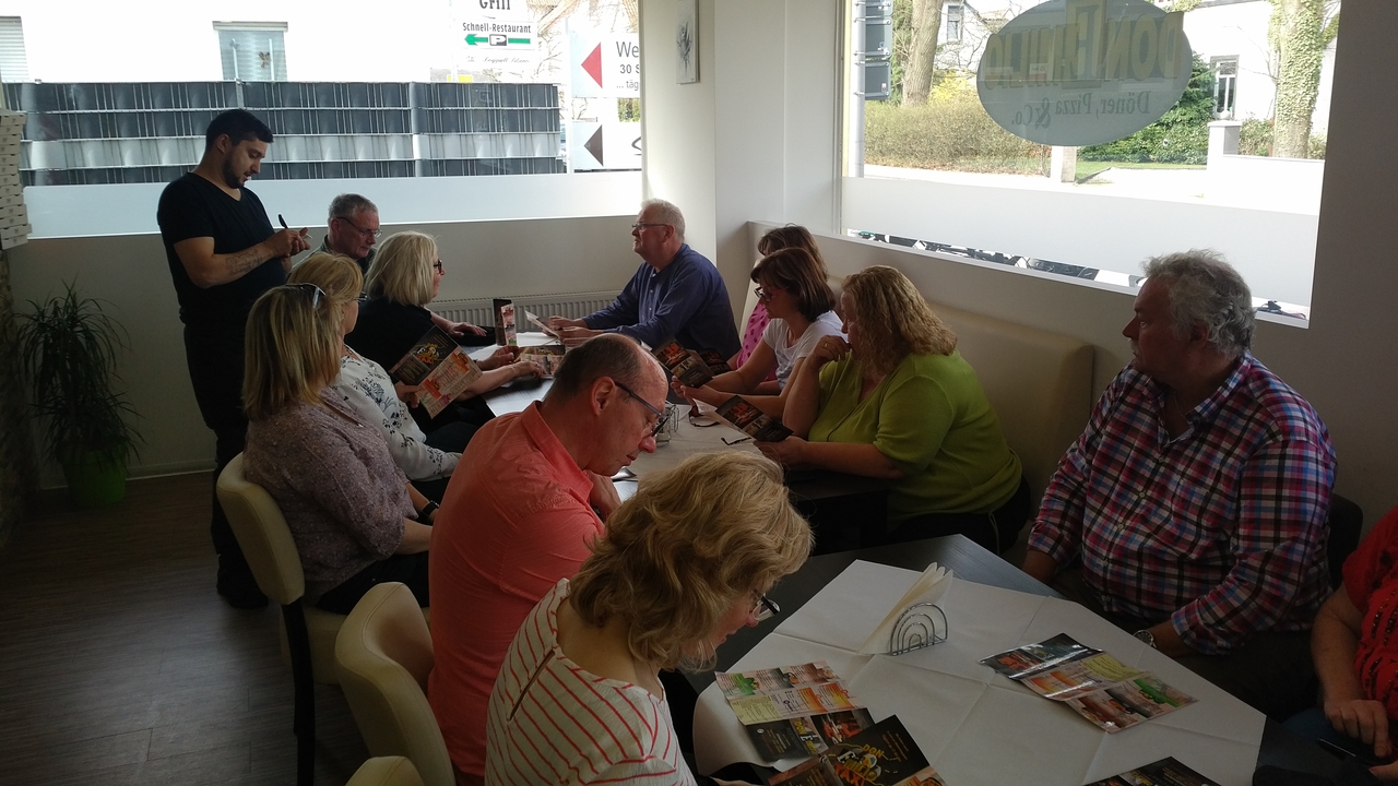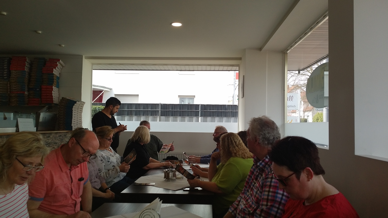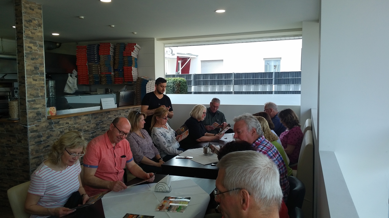 Schließlich werden wir in einer kleinen Pizzeria fündig, dessen Inhaber begeistert ist, noch 15 Personen bewirten zu können. Er verlängert extra dafür seine Öffnungszeit am Mittag.