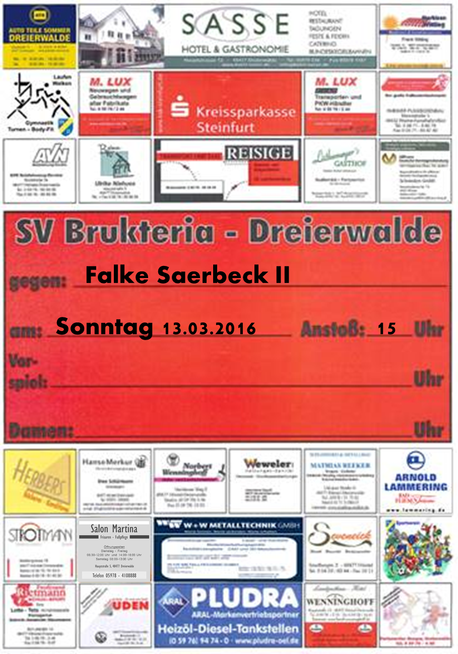 Unsere Erste Mannschaft Fußball Senioren Herren spielt am Sonntag 13.03.2016 um 15:00 Uhr in Dreierwalde gegen Falke Saerbeck 2