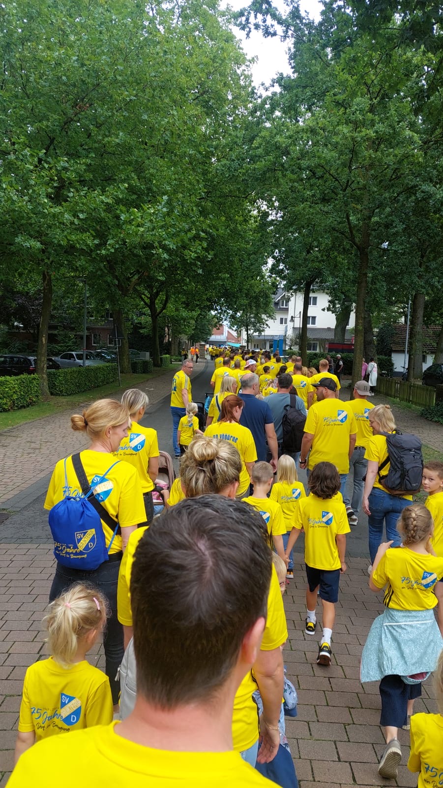 Treff ist um 13:00 Uhr am Dorfplatz mit dem gelben Jubiläumstrikot. Außerdem findet dort die Verlosung der Karten für die Fahrt mit dem Heißluftballon unter den Teilnehmern des Marsches statt. Anschließend laufen wir dann gemeinsam in Begleitung des Spielmannszugs Dreierwalde zum Stadion.