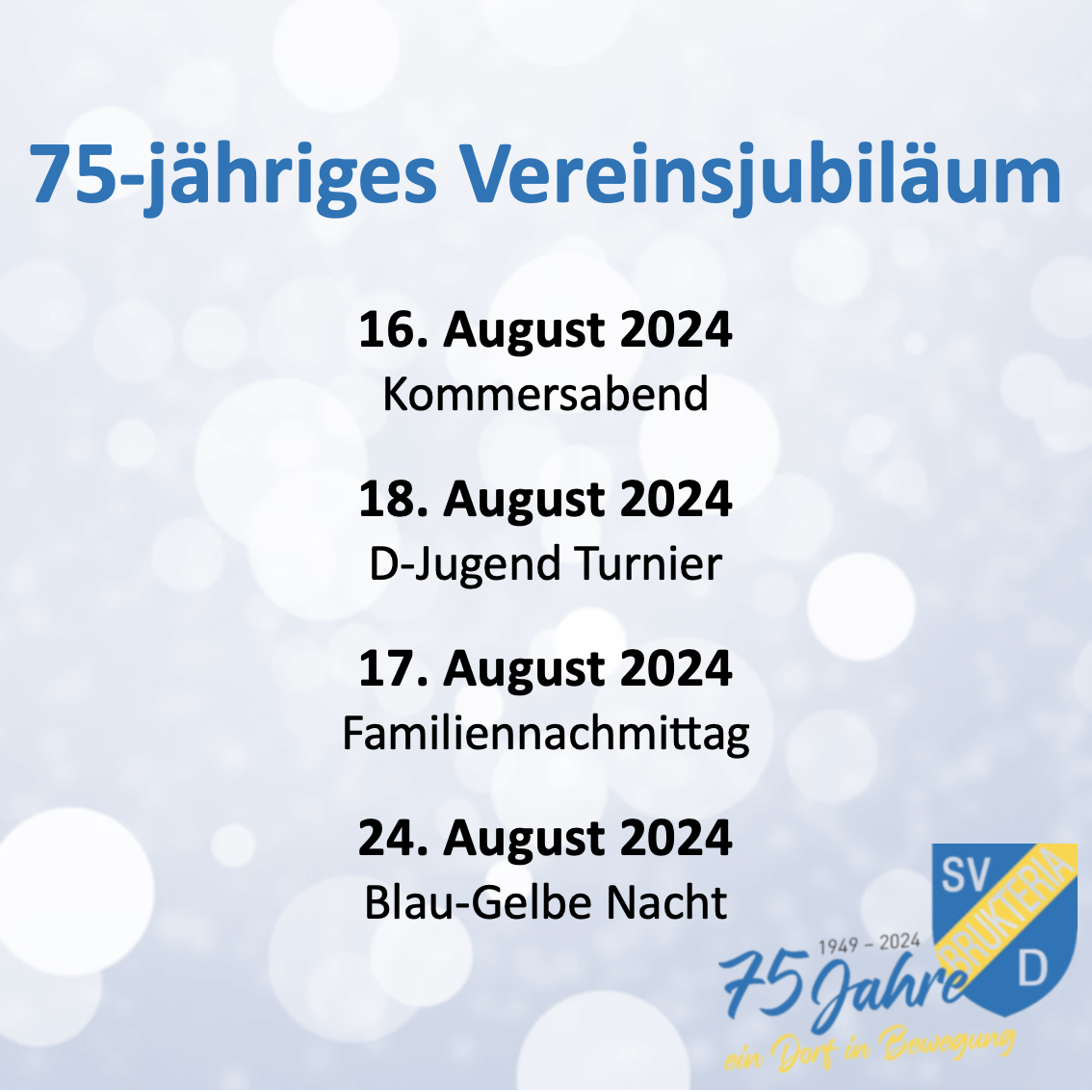 75 Jahre Brukteria - Veranstaltungen Unser Jubiläum - hier findet Ihr Infos und Details zu unseren Veranstaltungen