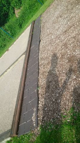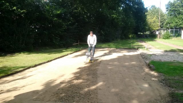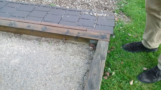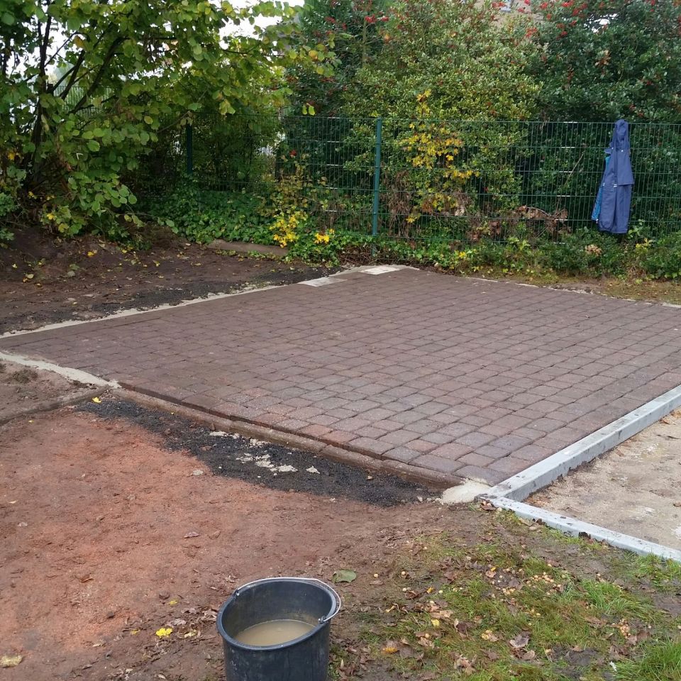 Pflasterung der Fläche an der Boule Bahn für späteren Unterstand und Hütte