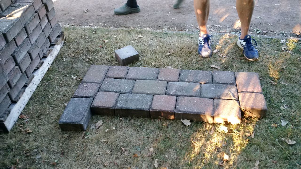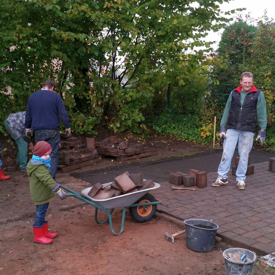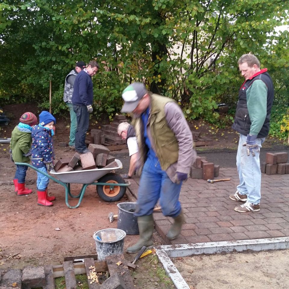 Mit vereinten Kräften des Bauteams wurde die Pflasterung durchgeführt und vollendet.