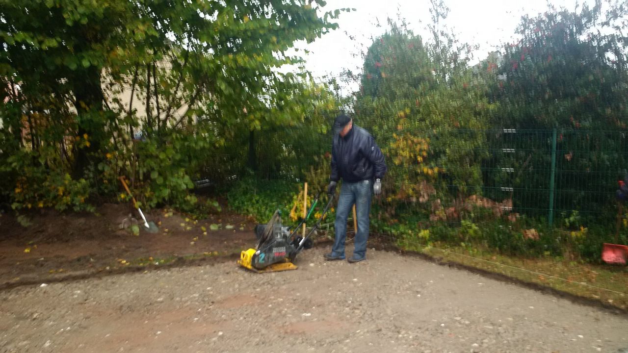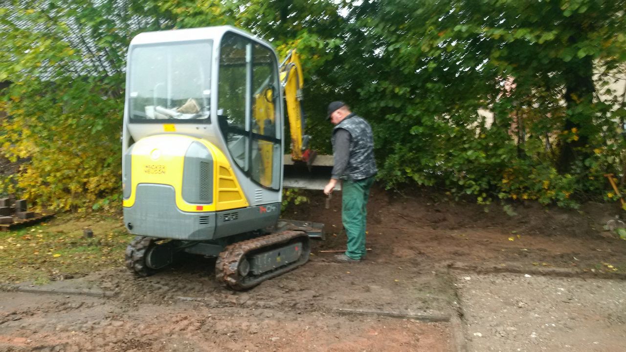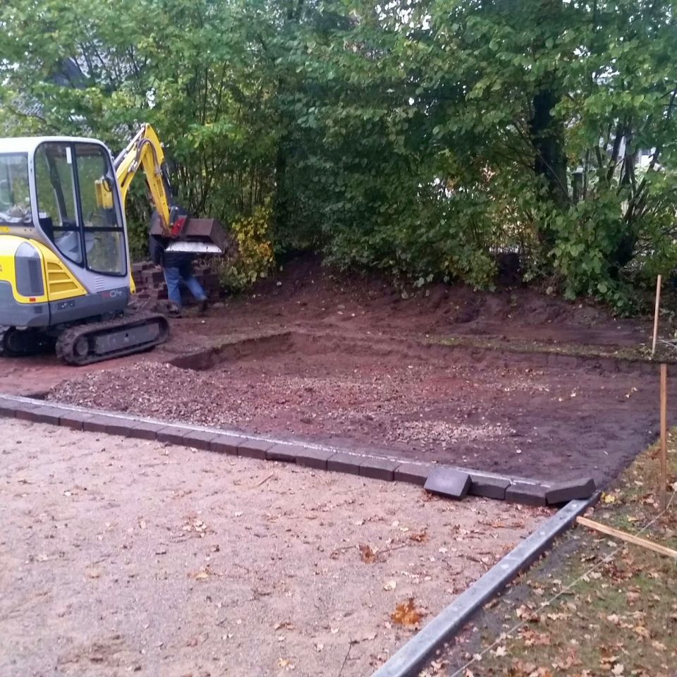 Die Pflasterfläche wurde ausgehoben und mit Schottergrundlage versehen.