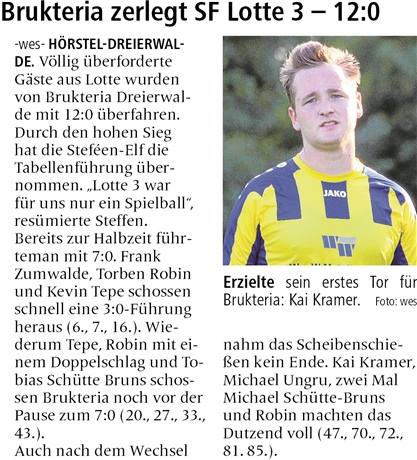 HÖRSTEL-DREIERWALDE. Völlig überforderte Gäste aus Lotte wurden von Brukteria Dreierwalde mit 12:0 überfahren.