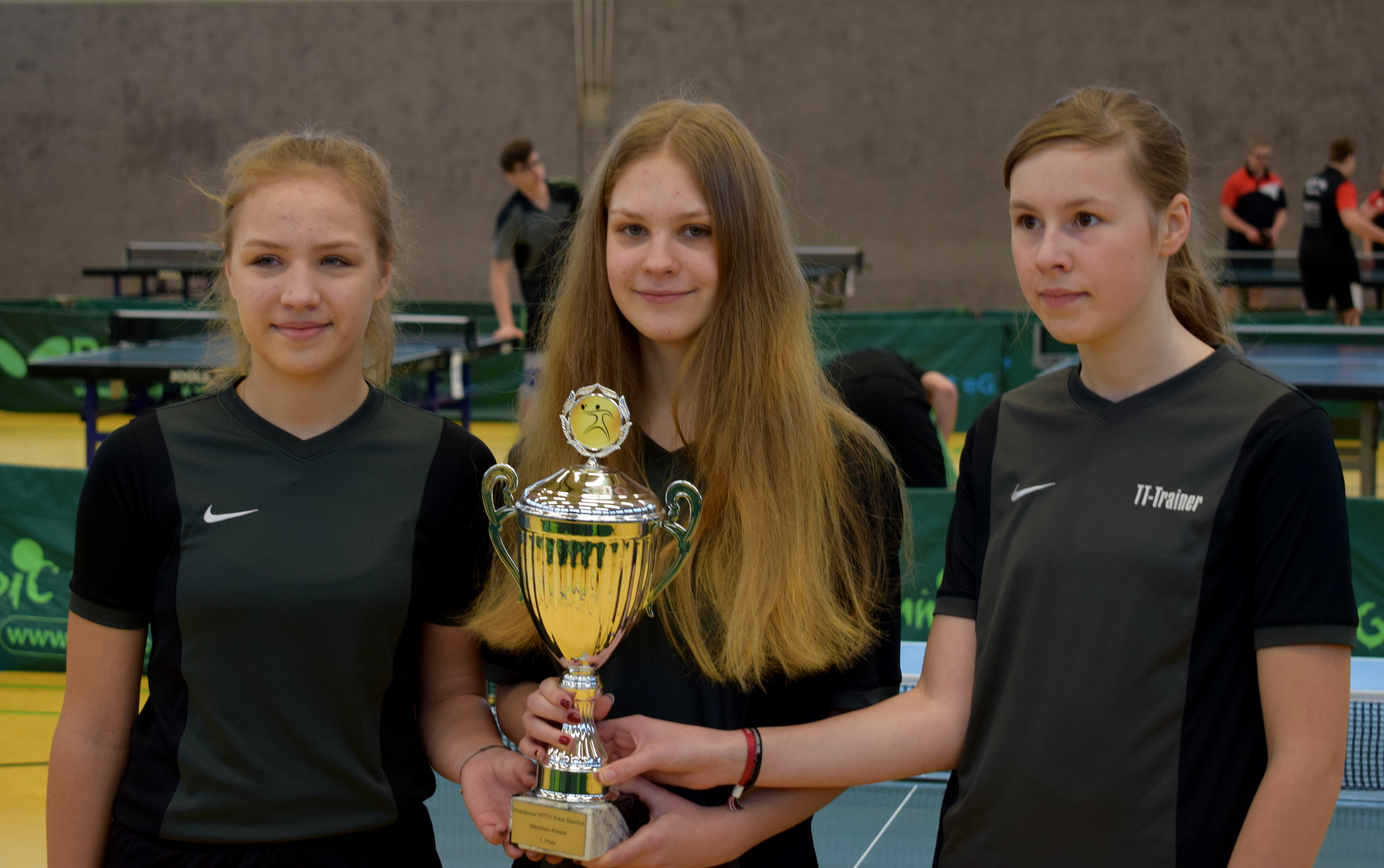 Am diesem ersten Wochenende im Jahr 2018 fanden in Rheine das diesjährige Kreispokalturnier statt. Mit insgesamt fünf gemeldete Mannschaften wollte die Tischtennisabteilung des SV Brukteria Dreierwalde an dem Turnier teilnehmen. Leider musste kurzfristig die Jungen-Mannschaft, aufgrund einer Krankheit bedingten Ausfalls, zurückgezogen werden. Die Mädchen-Mannschaft (Marlena Schmidt, Anjuli Wegener und Vivien Determann) konnten den Vorjahres-Kreispokalsieg von Dreierwalde mühelos verteidigen, da kein anderer Verein aus dem Kreis ein Team gemeldet hat.