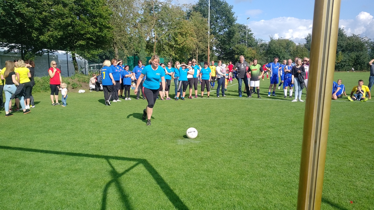 Neben den Herren die das Spiel auf dem Fussballfeld ausmachen, treten auch die Damen der Dorfteile im Elfmeterschießen gegeneinander an.