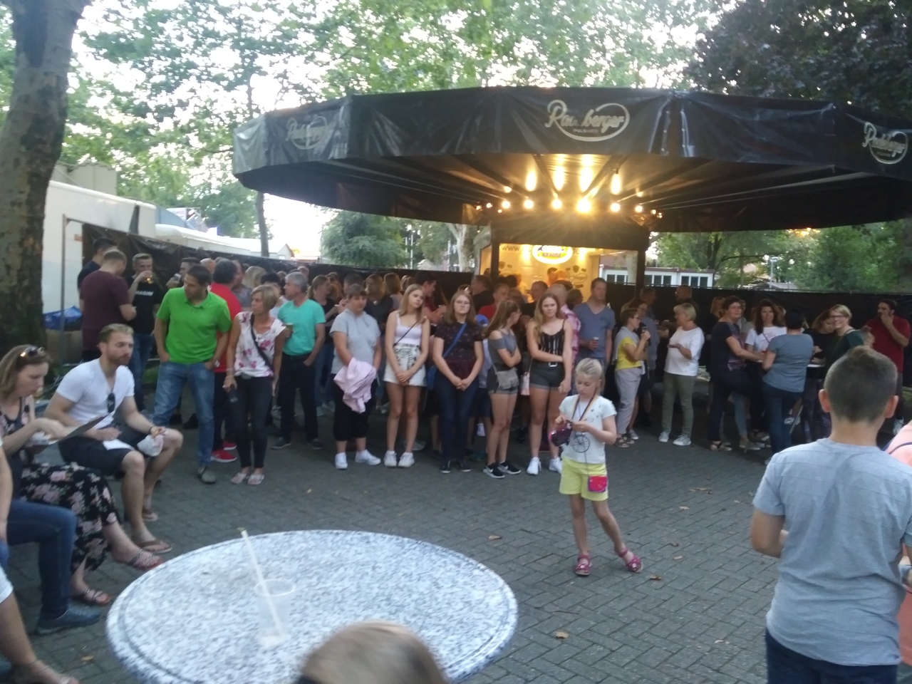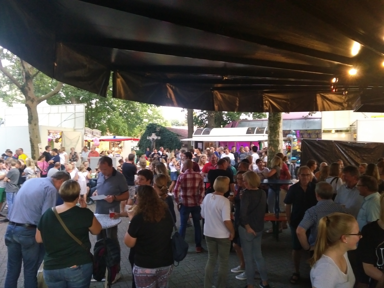 Eigenlich sollten sich die Dorfpokalmannschaften der Damen und Herren unmittelbar anschließen, was aber auf Grund eines Gewitters zunächst ausgesetzt werden musste. Zuschauer und Sportler mussten zunächst Schutz unter den Bier- und Kirmeswagen suchen und das Gewitter aufwarten.