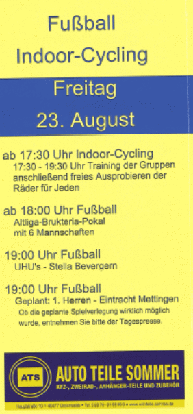 Integriert in das Altliga-Turnier der Alte Herren Abteilung startet auch die Breitsportabteilung mit einer öffentlichen Kurseinheit Indoor-Cycling in die Sportwoche.
