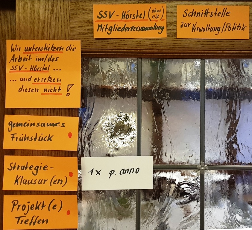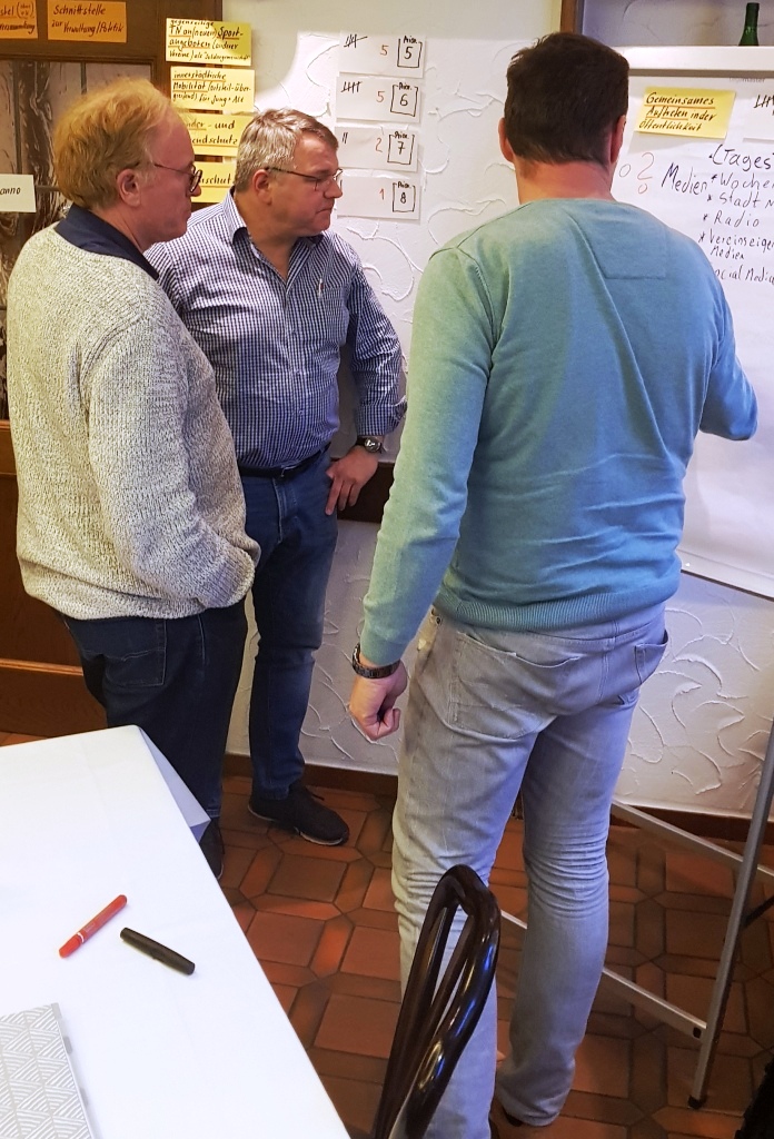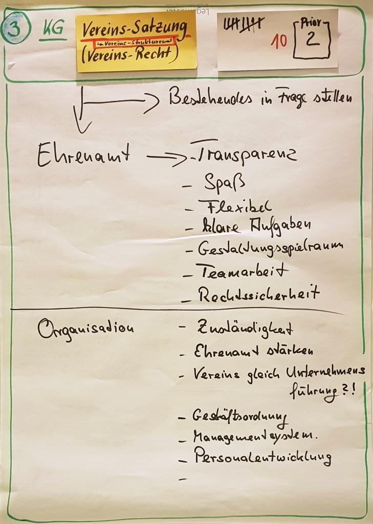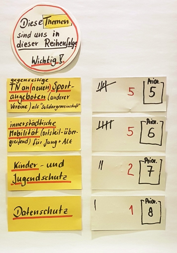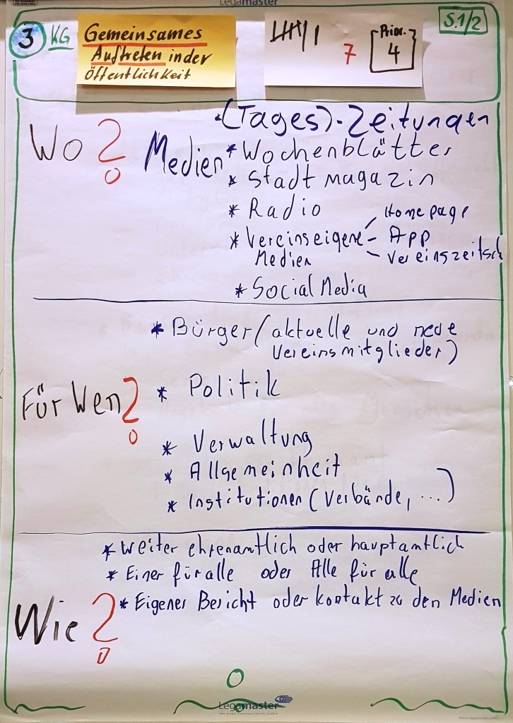 In großer Runde wurden zunächst mögliche Themen gesammelt und priorisiert. Gleichzeitig wurde auch über evtl. Gremien (Kommunikationsformate) nachgedacht, in denen diese Themen behandelt werden können.