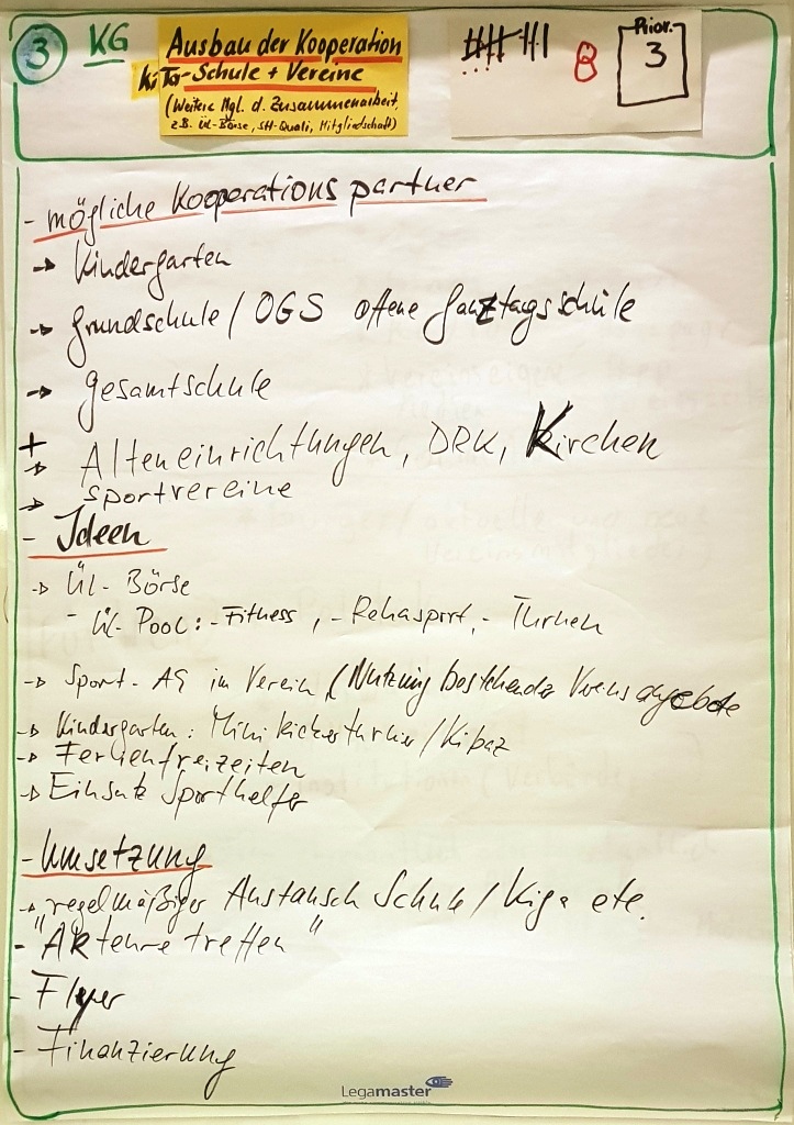 Ehrenamt attraktiv und flexibel machen, Organisation + Management stärken, .... - Aufbau Kooperation Kitas/Schulen + Vereine