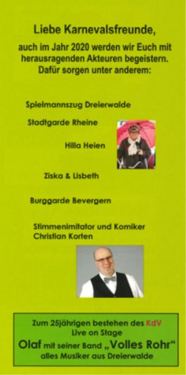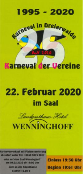 am Samstag den 22. Februar 2020 findet im Saal Wenninghoff wieder die traditionelle Karnevalssitzung der Dreierwalder Vereine statt.