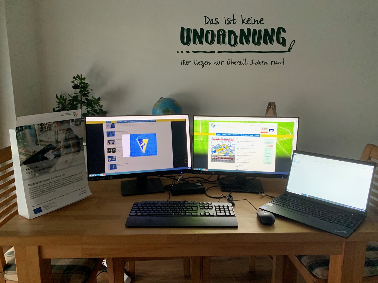 Neben den beiden Arbeitsplätzen für die Vereinsverwaltung reichte die Fördersumme auch für ein drittes Notebook, dass als „Pool“-Gerät für die Ehrenamtlichen in den verschiedenen Sparten des Vereins genutzt werden soll. Auch hier gibt es vielfältige Aufgaben, angefangen vom Passwesen, über Belegungspläne, Verwaltung der Spiele und Wettkämpfe bis hin zu Mannschaftsmeldungen und Internetbeiträgen.