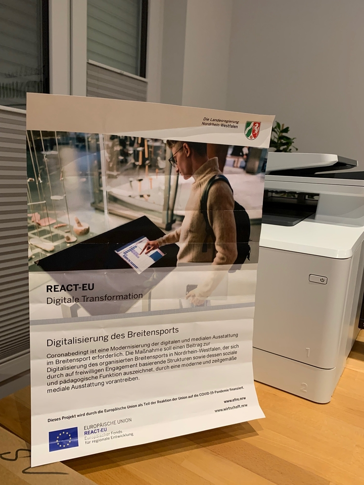 Über das Förderprogramms „Digitalisierung gemeinnütziger Sportorganisationen in Nordrhein-Westfalen“ mit Mitteln aus dem europäischen Fonds für regionale Entwicklung im Rahmen des REACT-EU-Programms wurde auch der SC Brukteria Dreierwalde 1949 e.V. mit 5.000 € gefördert.