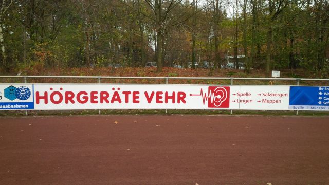 Neue Bandenwerbungen im Stadion am Weikamp wurden im September montiert.